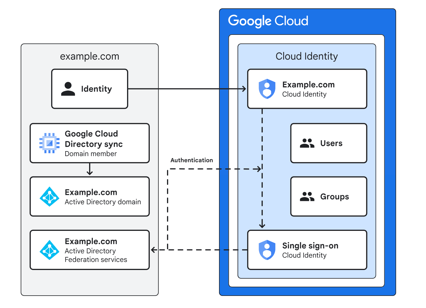• Cloud Identity: Google’s identity management solution, often synced with existing systems.