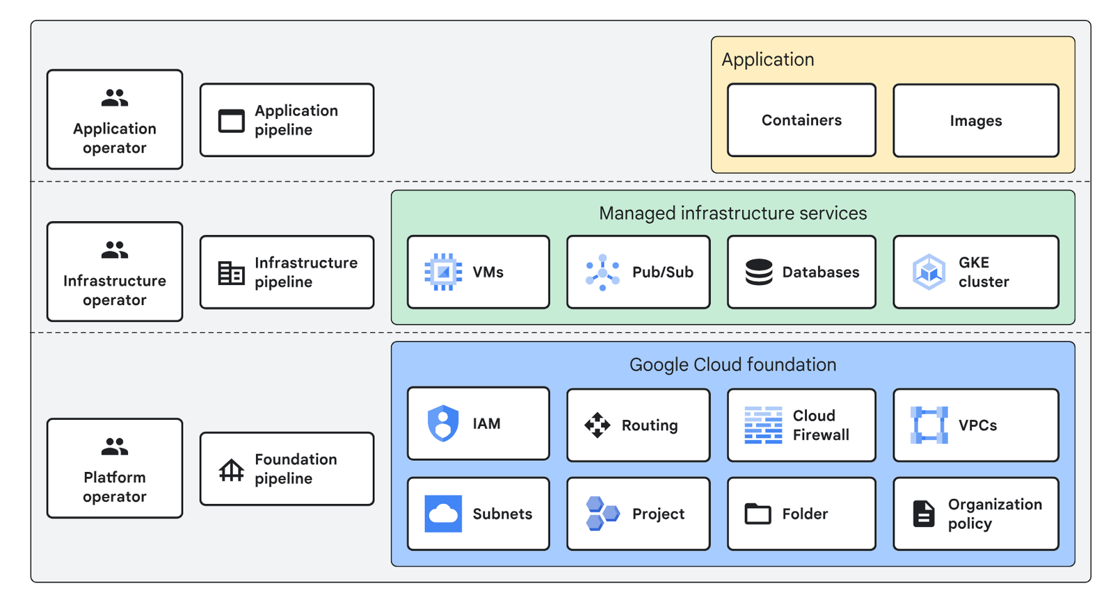 • Organization: Create the top-level container for all your Google Cloud resources.