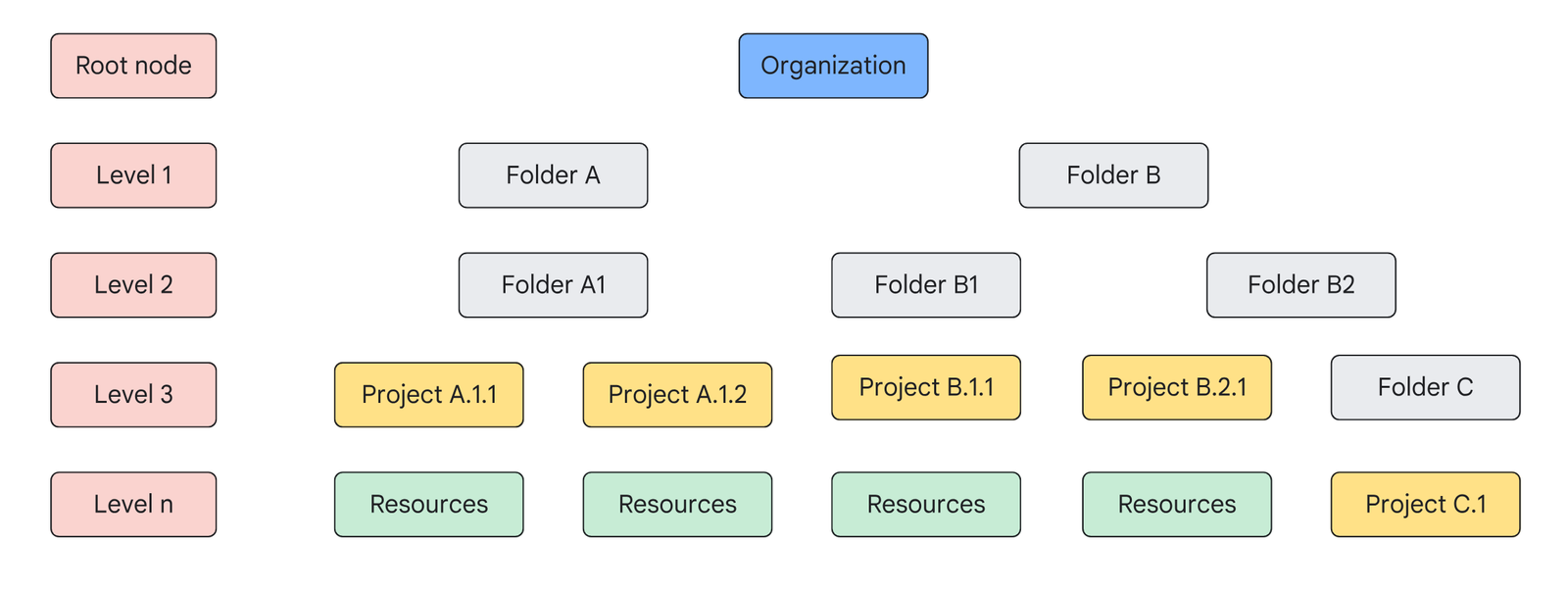 • What it is: How you organize projects and folders within Google Cloud, similar to a company’s organizational chart. [Refer to Resource Hierarchy diagram from Section 2]